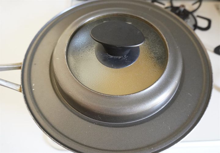沸騰したらフタをして弱火で10分ほど、やわらかくなるまで煮ます。