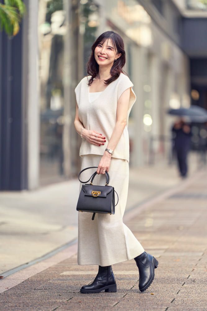 3. 【40代のユニクロ】年中穿ける「スカート」は“ワントーンコーデ”でさらに高見え!SNAP<2選>