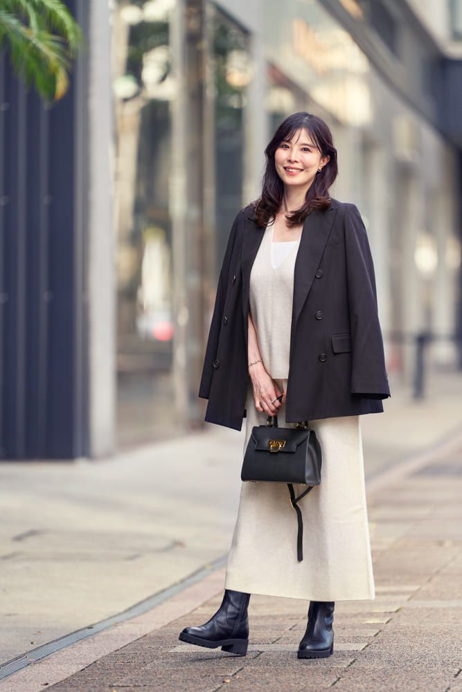 【40代のユニクロ】年中穿ける「スカート」は“ワントーンコーデ”でさらに高見え!SNAP<2選>