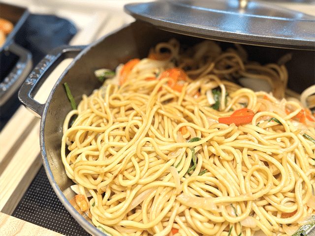 八重山そばを焼きそば風にアレンジした、沖縄そばの焼きそば