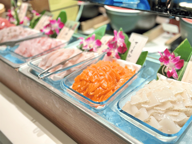 手前3つが琉球スギ、サーモン、イカ。「琉球スギ」とはスズキ目に分類される魚で、暖かい海域を中心に生息しているのだとか
