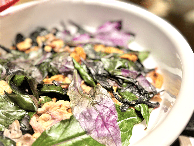 ハンダマ炒め。沖縄の伝統食材「ハンダマ」は、不老長寿の薬とも呼ばれた野菜