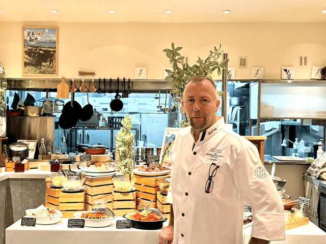 The BREAKFAST HOTEL PORTO石垣島・MARCHE石垣島の料理長を務めるキースリング クリス ローランドさん。石垣島に来る前には、大阪で自身のお店を手がけていたのだとか