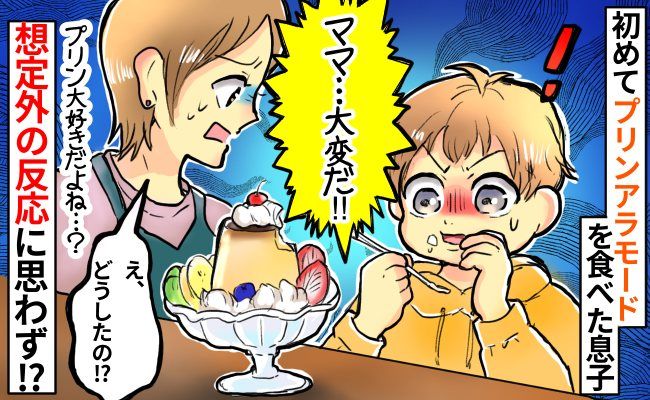 「大変だ…!」ファミレスで初めてプリンアラモードを食べた息子。想定外すぎる反応に母は思わず!?
