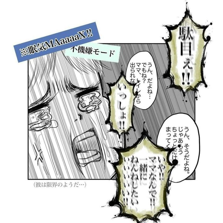 寝かしつけは無理だと思ったゆいさんは体調が悪いアピールをして、先に寝てほしいと息子に伝えます。しかし、息子はちょうど眠くなってきて不機嫌モードに。どうにか息子の気持ちに寄り添いながら話を続けるゆいさんですが、ついには限界を迎え声を荒げてしまいました。