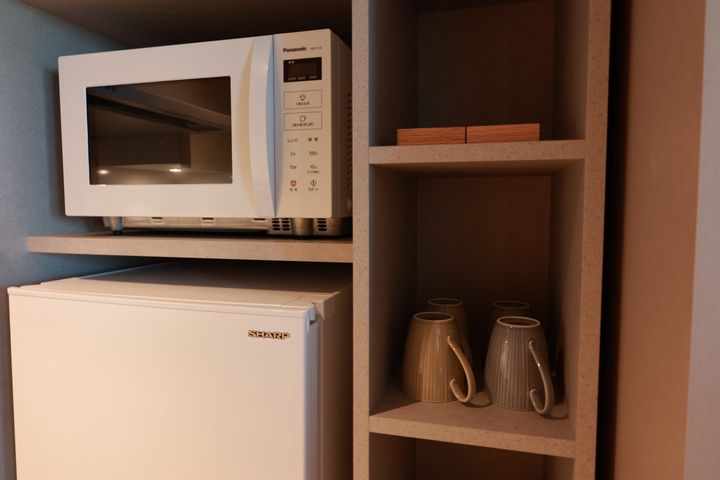 連泊に対応をする乾燥機、テイクアウトした商品を客室で楽しめるようにと、冷凍冷凍庫、電子レンジ全てが全室に備え付けられています。IHクッキングヒーターやシンク付きのキッチン完備の客室もあるので、築地で購入した新鮮なお魚を調理するといった楽しみ方もできます。