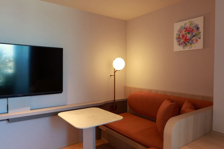2階には、宿泊者が24時間使用できるリフレッシュルームも完備。人の目線が交わらないような作りになっているので、集中しやすく自宅にいるようなリラックスできる空間です。