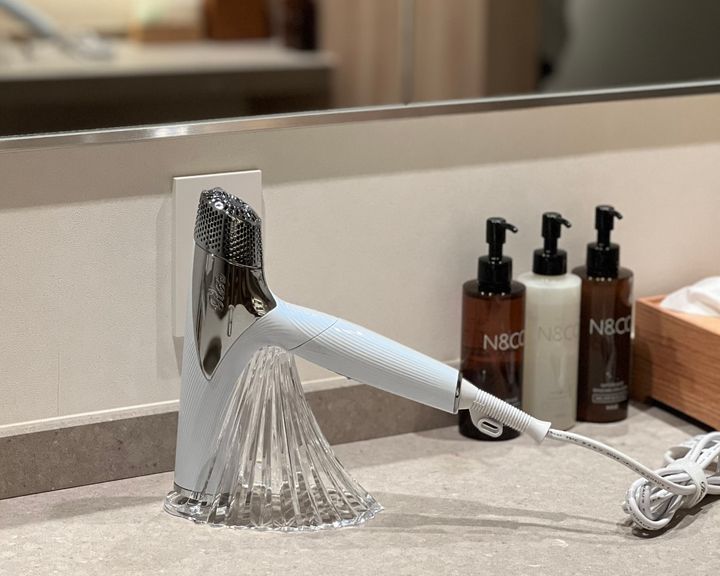 重厚感のある石積みや光の演出が、まるで洞窟にいるかのような居心地の良い気分にさせてくれます。洗い場は、シャワーブースがメインとなっており使い勝手の良い半個室の作りなのもプライベート空間があり、より日々の疲れなどから解放され癒されます。パウダールームには、美顔器などで有名なリファのドライヤーが完備されているのも嬉しいポイント。