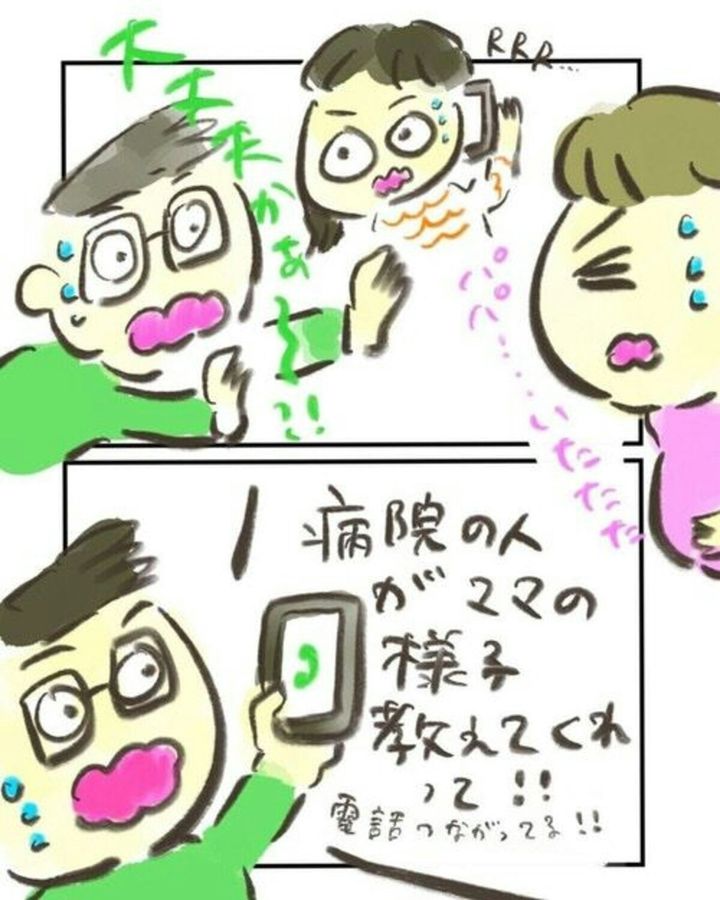 救急車で病院に向かうと、赤ちゃんもママも無事だったことに驚く先生。それは、最初に駆け付けてくれた女性やお店の人の協力、そして病院に電話をつないだパパと、電話口から励ましてくれた先生たち、みんながいたからこそなのでしょう。