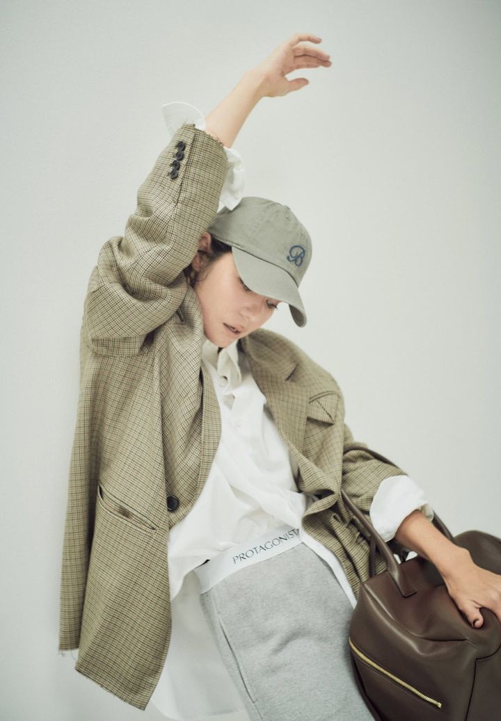 ジャケット¥39,600(プランクプロジェクト/プランクプロジェクト 青山店)、シャツ¥33,000(レリタージュ マルティニーク/マルティニーク ルミネ横浜)、スエットパンツ¥27,500(プロタゴニスタ/アダム エ ロペ)、キャップ¥13,200(マディソンブルー)、バッグ¥167,200(フランツロアー/デ・プレ)