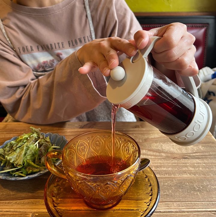 そして、飴色のカップとソーサーが、お茶の色と合ってとても温かみを出してくれています✨