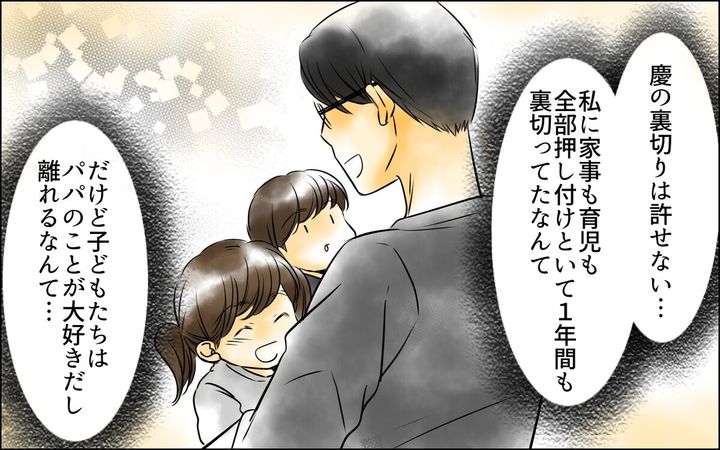 ・ろくに家に帰ってこないのに、パパ大好きの子どものためにって、子どもを理由にしたら、子どもを守れるんですか。逆に傷つけると思うけど。