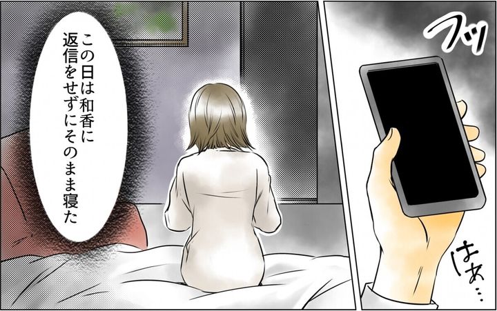 ・和香って恋愛脳というか、そうとうやばい女じゃない? だからさ、旦那が和香からの連絡をのらりくらりかわしてたらそのうち「連絡できないのも離婚できないのも奥さんと子どもたちのせいだ!」って自分勝手な思い込みで嫌がらせとかしそうで怖いんだけど。