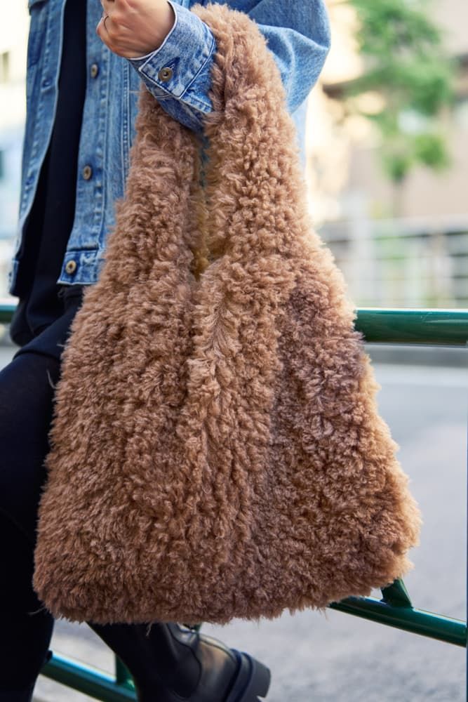 タイツとブーツが味方してくれるこの季節はミニスカートチャレンジにうってつけ。超ミニ丈のワンピースにはデニムジャケットを合わせるとヘルシーに仕上がります。ぬいぐるみみたいなモコモコファーのバッグで冬を先取り!