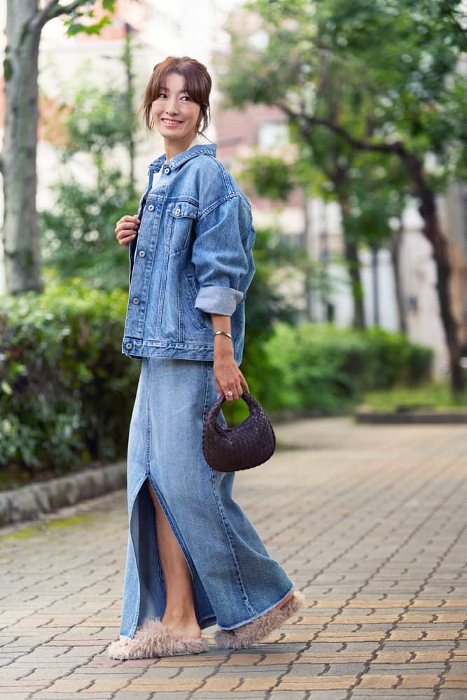 <オシャレが一番楽しい秋本番>…デニムONデニムで大胆に!スカートのスリットで女性らしさも意識