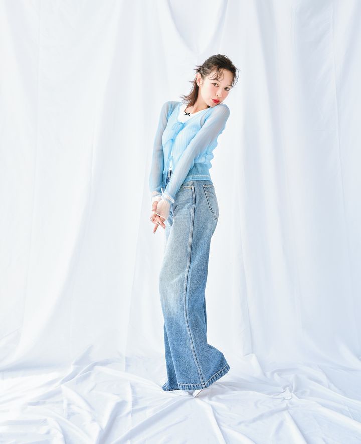 水色トップス×デニムブルーの世界観がたまらない!