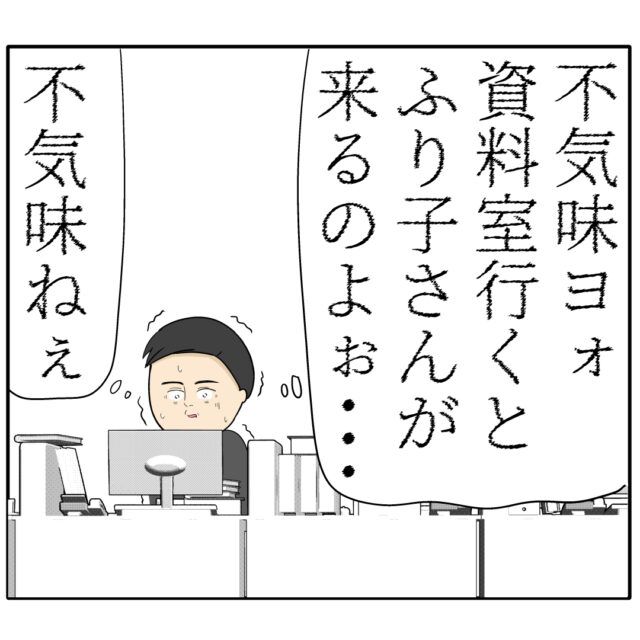 その頃良し男さんは、最近資料室に行くといつもふり子さんに会うことを不気味に思っていました。良し男さんが行くのを見計らってふり子さんが資料室に行っているとは思いもしない良し男さん。