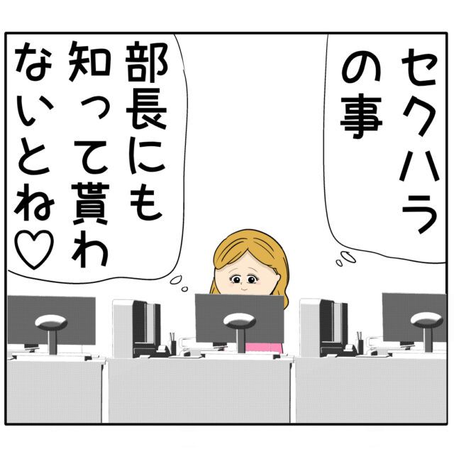 そして、ふり子さんはさらに次の手を打っていました。「セクハラの事、部長にも知ってもらわないとね!」とパソコンの前で何やらやっています。