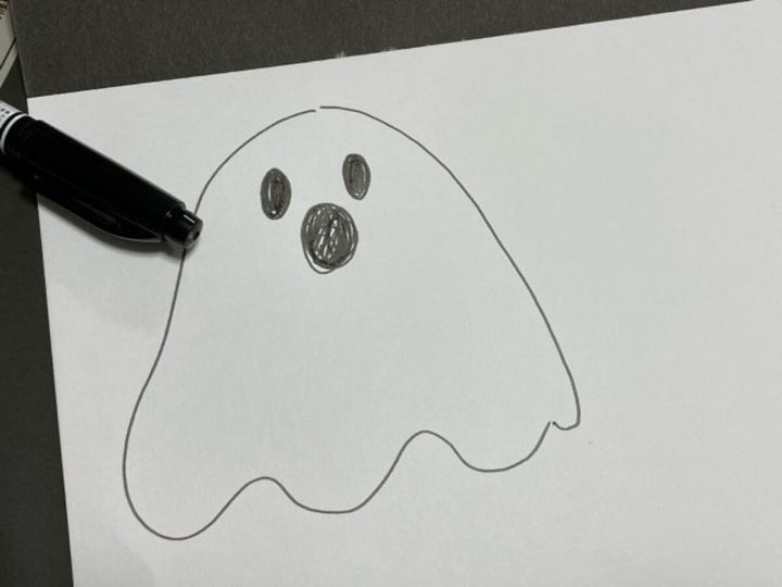 色画用紙の中にある白画用やピンクの画用紙を使って、おばけちゃんのモチーフを作りました。