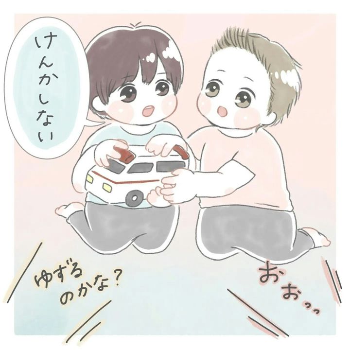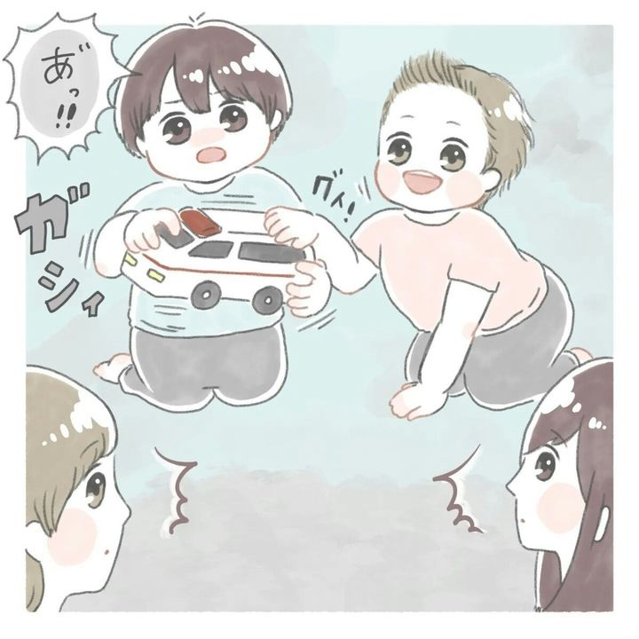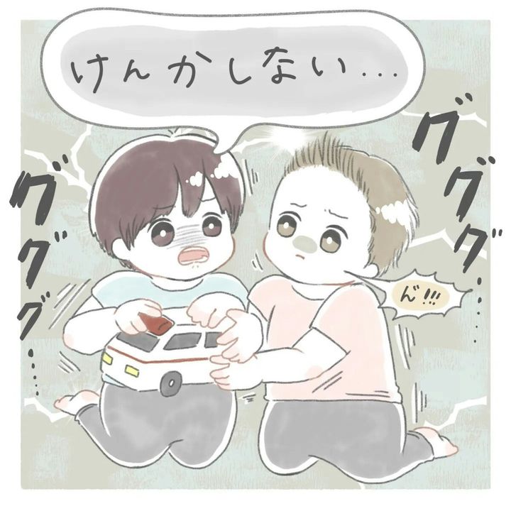 遊びに行く前に「お友達とけんかしない」とそら(@sora.nodiary)さんと約束したふたばくん。遊んでいたおもちゃをお友達に取られそうになりムッとしますが、「けんかしない」と堪えます。しかしだんだん雲行きが怪しくなっていき…?