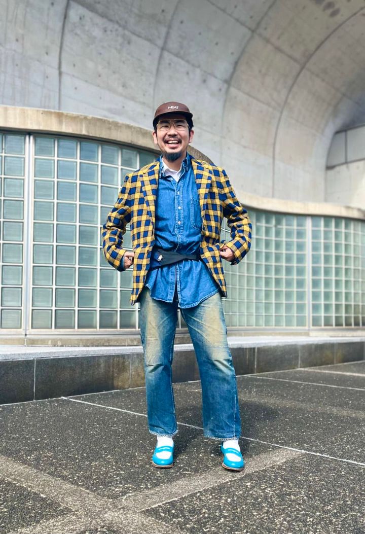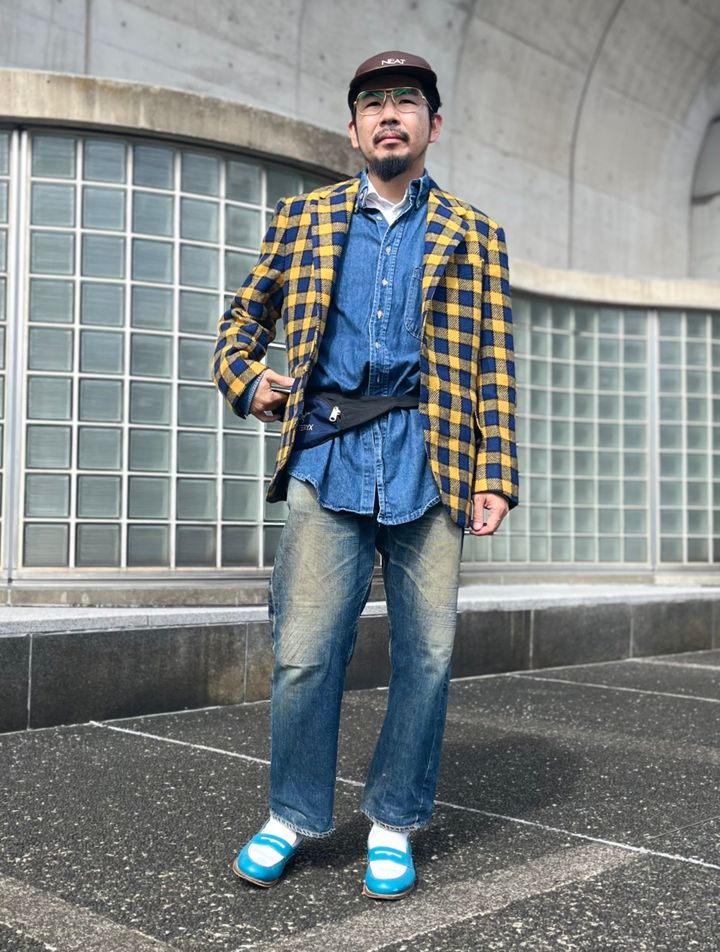 ジャケットはトレンドではあるものの、意外と着こなすのが難しいアイテム。「ジャケットはハマりすぎるとコスプレっぽくなってしまいます。なので、スタイリングに抜けを持たせることがなにより重要なのです」。そんな西野さんがセレクトしたのは、カラフルなツイードジャケット。「クラシカルなジャケットではありますが、他にはない配色で個性をプラスしてみました。とはいえ、これにオックスフォードシャツやスラックスを合わせるとハマりすぎてしまう。そうならないようにデニムシャツやジーンズで抜けを持たせています」