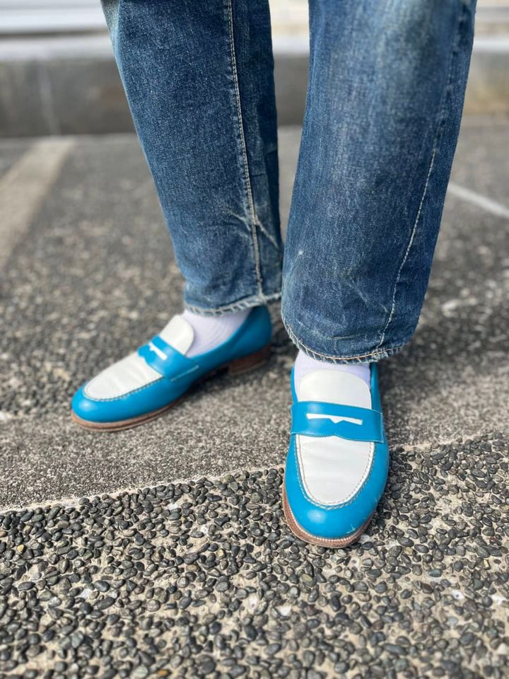 足元はローファーできちんと感を持たせつつ、配色で遊び心を演出