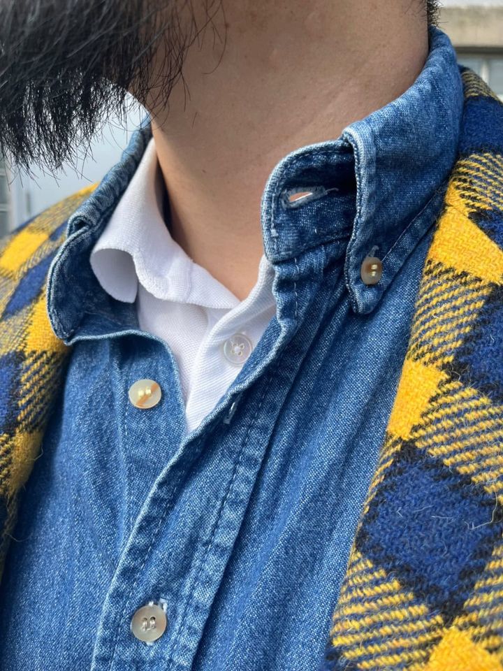 デニムシャツとポロシャツを合わせた玄人好みのレイヤード