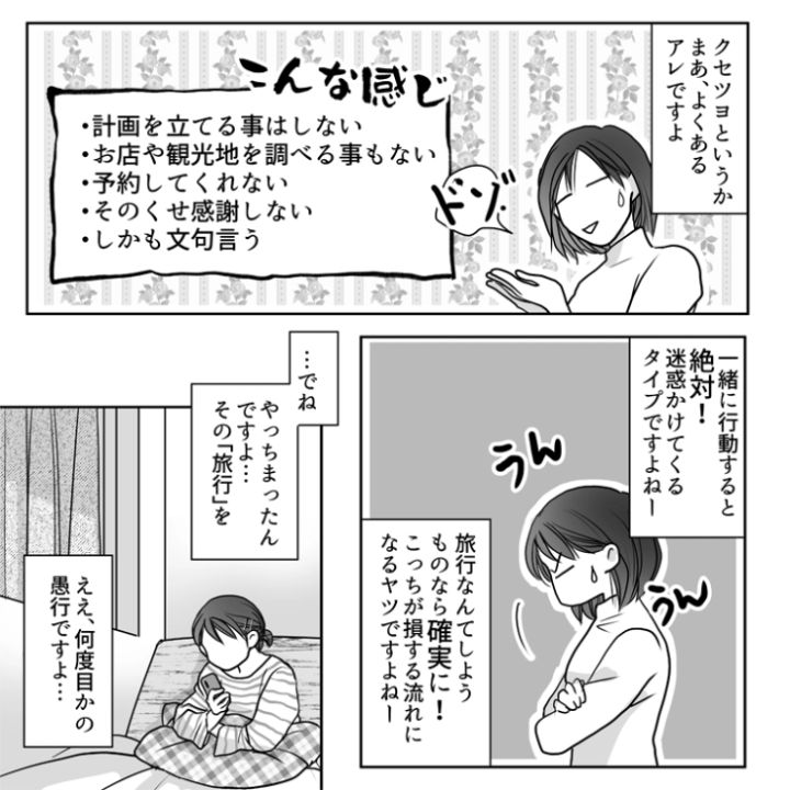 実際に読者が体験したリアルエピソードを漫画化!今回は絶対に感謝しない、考えなしに計画を変える、そのくせ自分では調べたり、行動したりしないという自己中心的な女友達のお話をご紹介します。