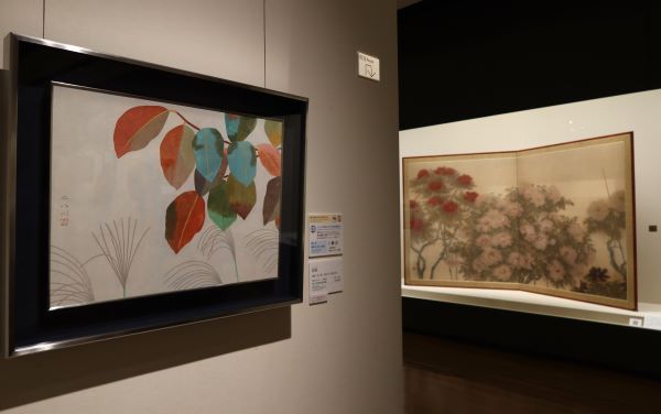 福田平八郎 右側《牡丹》1924(大正13)年 絹本・彩色、左側《彩秋》 1943(昭和18)年 絹本・彩色 どちらも山種美術館