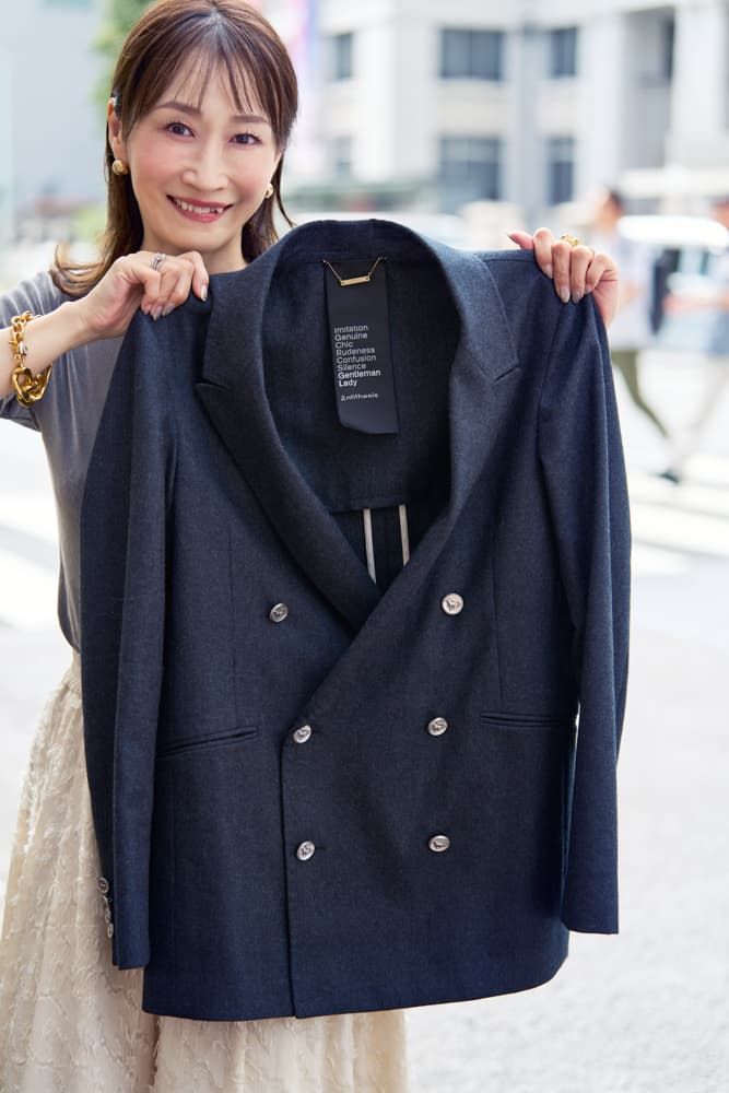 オーバーサイズでダブルブレスト、マニッシュだけど羽織るとたちまち女性らしく仕上がる、カオスの名品ジャケット。ジャケットならカオス!と信頼していて、毎シーズンチェックしています。