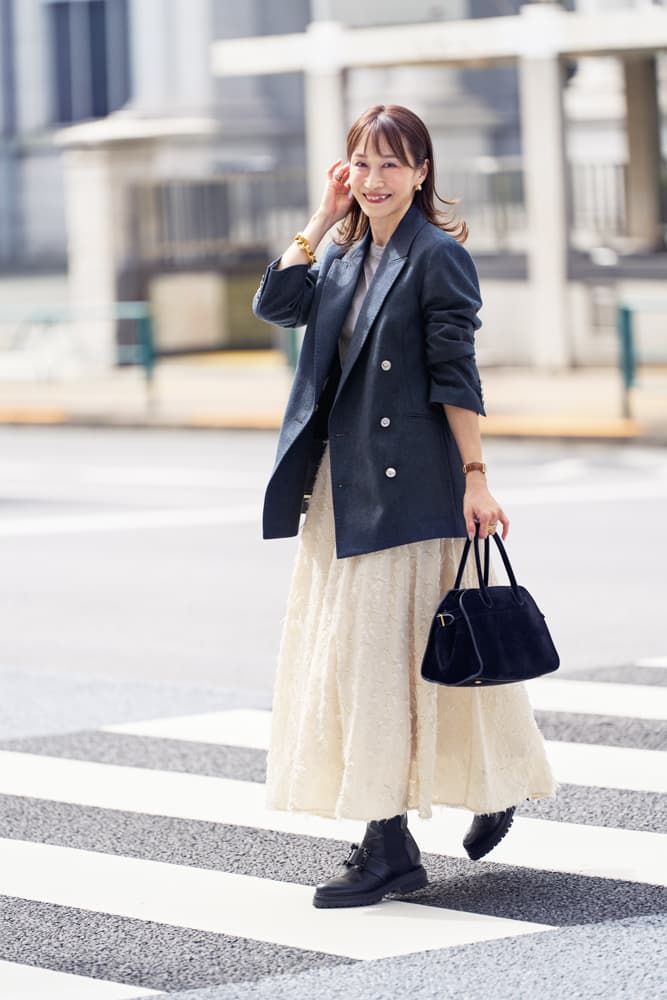 <オシャレが一番楽しい秋本番>…糖度の高いシャギースカートもジャケットで中和