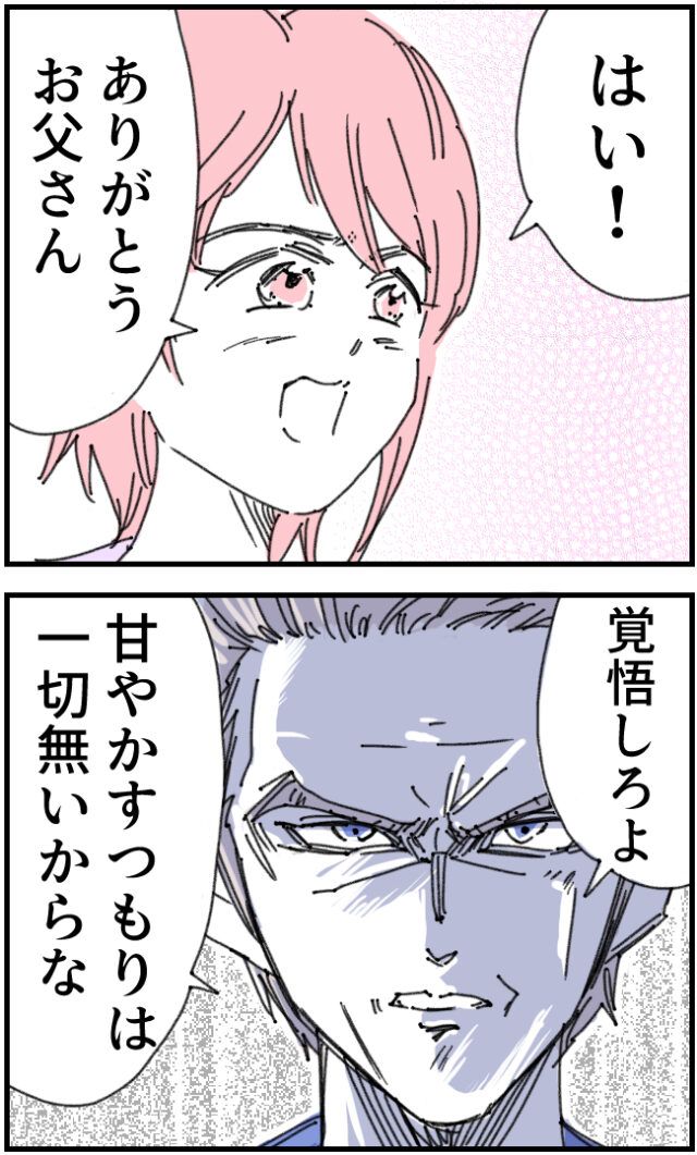 「はい!ありがとうお父さん」と感謝するかおりさんに、「覚悟しろよ。甘やかすつもりは一切無いからな」とお父さんは厳しい表情で言いました。
