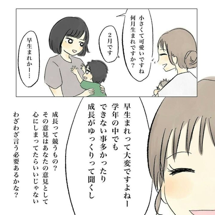 イラストレーターのまぎさんのお子さんは2月生まれです。そのことを知り合いに話すと「早生まれかー」と言われたのち、同学年の中での発達の違いなどについてネガティブな印象を話されたそうです。
