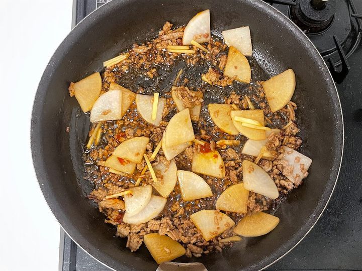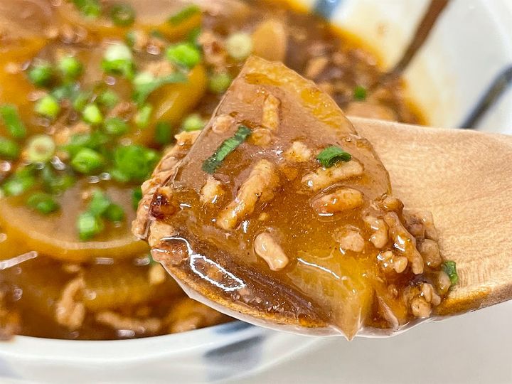 大根はとろっと柔らかくてジューシーに仕上がり、砂糖を加えたけれど甘さが気にならず、とろみのおかげでひき肉が大根に絡んで食べやすい!