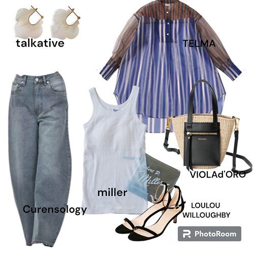 Tシャツとデニムのカジュアルアイテムにカゴバッグや帽子、パンプスのコンサバなものをつける、その合わせが当時は斬新だったのかなと思います。
