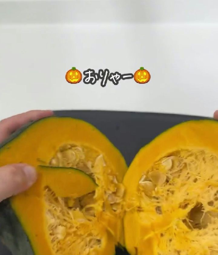 まさか、こんなに簡単にかぼちゃが割れるなんて信じられないですよね。今までカットかぼちゃを選んでいた人も、こんなに簡単なら、丸ごとのかぼちゃが選択肢に入るかも?
