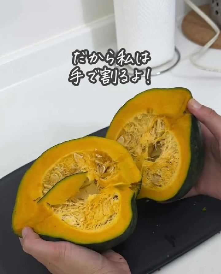 そんなとき、ゆみ|家事をラクにする暮らしのメソッドさんの切り方が役に立ちます。かぼちゃを素手で割るなんて、いったいどうやるのでしょうか。さっそく見てみましょう。