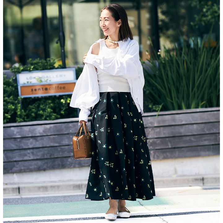 ライター・島田有香さん(5歳男の子・3歳女の子ママ) 甘派の自分には着こなしが難しくシャツへの苦手意識がありましたが、同系色で合わせればアンバランスにならずキレイ見えを実感。形が美しく大きすぎないサイズ感が、主張の強い柄スカートとも喧嘩せず、むしろオシャレを更新。家を出る時「とりあえずシャツを持ってればなんとかなる!」から、この秋フル活用の予定。