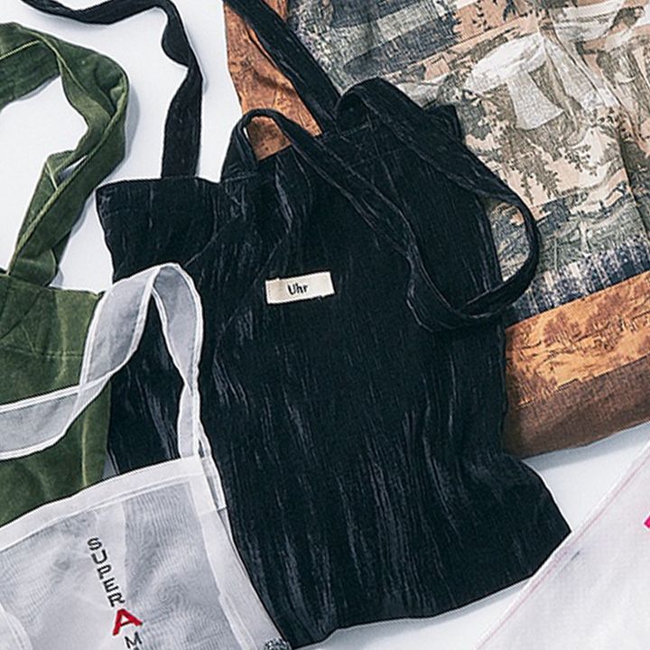 大人気のUhrのトート、秋冬の新作は縦皺の入ったクラッシュベロア素材。PCもすっぽり入るサイズ感。 バッグ[H39×W34.5cm]¥6,600(ウーア)