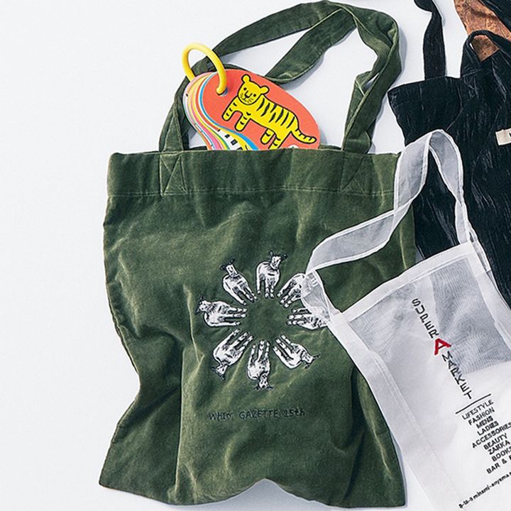 ベロア生地に可愛いアニマル刺繡が程よいカジュアル感。デイリーユースにピッタリ。 バッグ[15th別注/H44×W41cm]¥22,000(トリビュート/ウィム ガゼット 青山店)他/スタイリスト私物