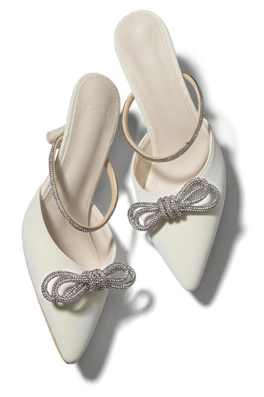 ストリング状のビジューで作られたリボンモチーフがおしゃれフェミニン。華奢なビジューストラップも魅力的。