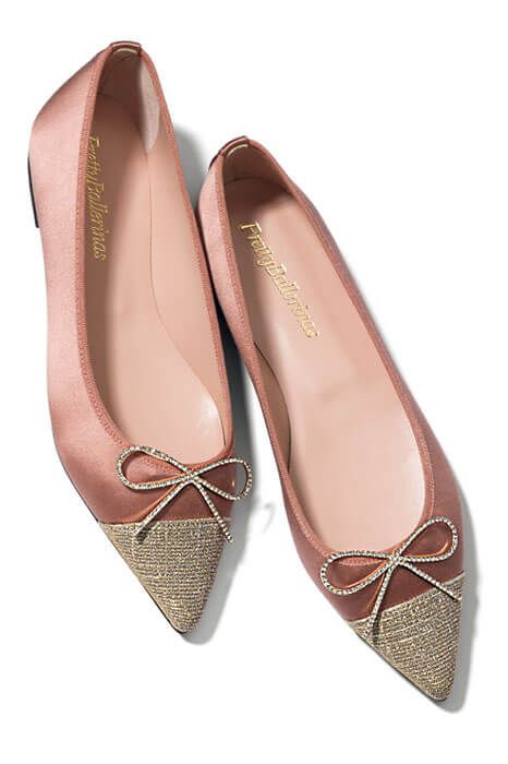 ピンクサテン×繊細なビジューリボンで可憐な足元を演出。