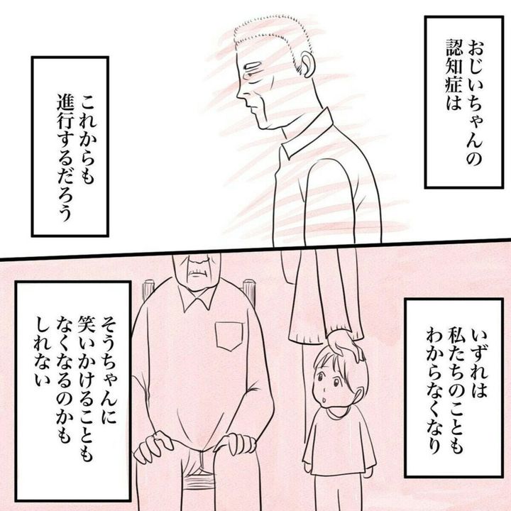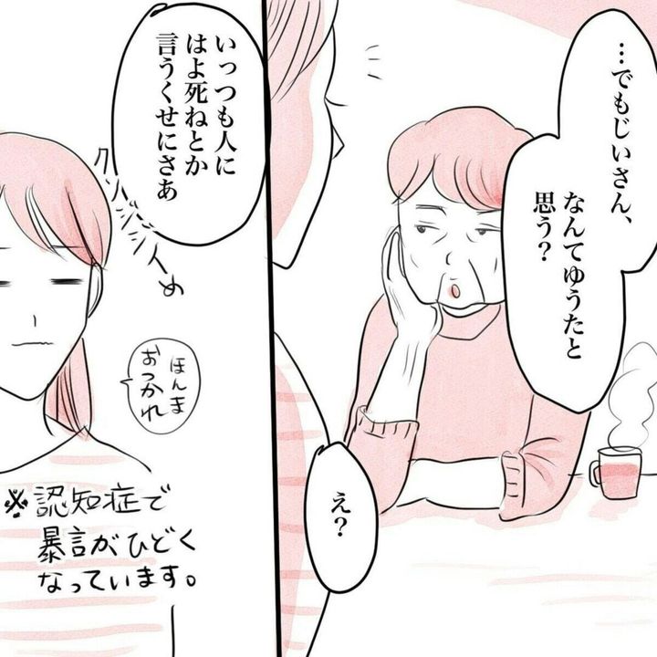 妻には自分より長生きしてほしい、と思いを伝えたかぞくのかたちさんの祖父。認知症で妄想がある状態でも、妻といつまでも一緒にいたいという気持ちは持ち続けていたのですね。