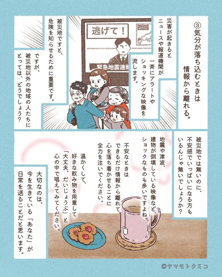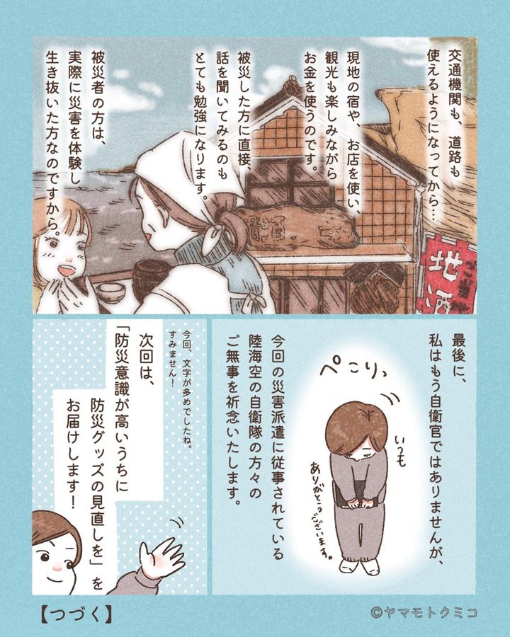 元海上自衛隊のイラストレーター・ヤマモトクミコさんが、東日本大震災の支援を通じて学んだことをマンガでお伝えする連載「元自衛隊員が描く“こころの防災”」。