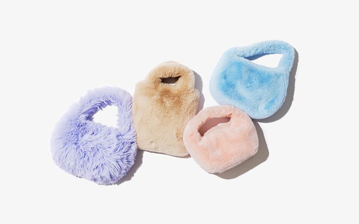 ソウルを拠点とするデザイナーズブランドが日本初上陸。やや角張ったスクエアシルエットにより、ふんわりとしたファー素材でも大人っぽい雰囲気に。開口部はマグネットボタンで開閉できるので、中身が見えず安心です。エコファーミニトートバッグ<H24.5×W21.5>¥14,300(ACOC/ジャック・オブ・オール・トレーズ プレスルーム)