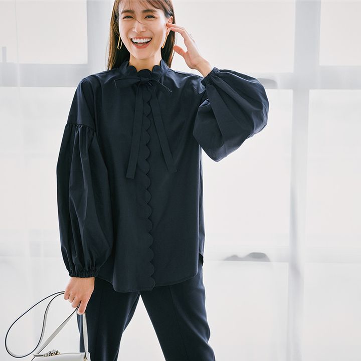 厳しい暑さもようやく収まり、待ちに待った秋服を楽しめる時季になりました。そこで今回は、1点投入で秋らしく&今っぽく仕上がるトレンド服を豊富にラインナップ!今回は、スカラップのほの甘なディティールが好印象なブラウスをご紹介。今年の春に登場して大ヒットしたデザインがリニューアル。さらに万能ブラウスとなって再登場です♡
