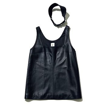 「“ロク”のレザーベストと、同素材のヘアバンド。やわらかな羊革でごわつきがないので、夏もタンクトップのように着ていました。涼しくなってきたらニットとのレイヤードを楽しみたい」(樋口さん)