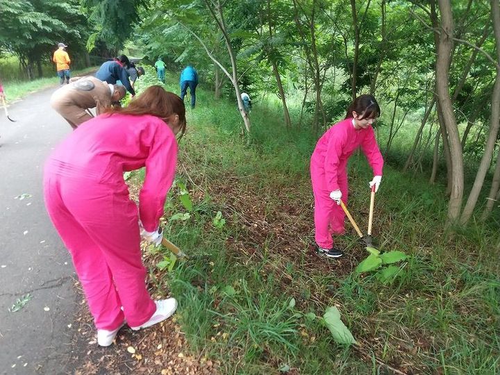 地域の町内会と、近くの東海大学、NPOが協力して、草刈りを行いました。