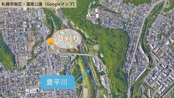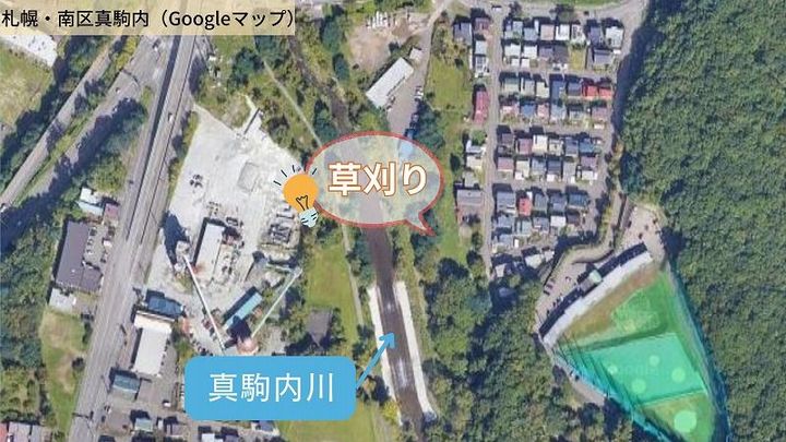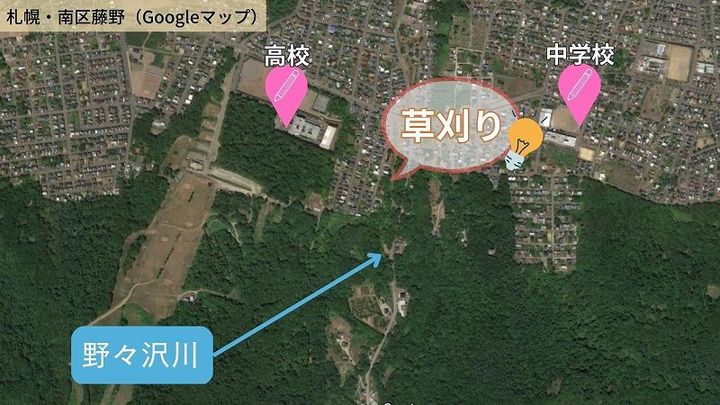 そのクマが駆除された2週間ほど後、札幌市は、ここ野々沢川で札幌藻岩高校と協力して草刈りをしました。