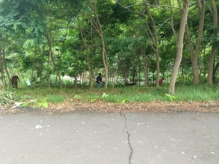 草刈り中もランニングや散歩を楽しむ人たちが多く通り、この場所で対策する意義を強く感じました。